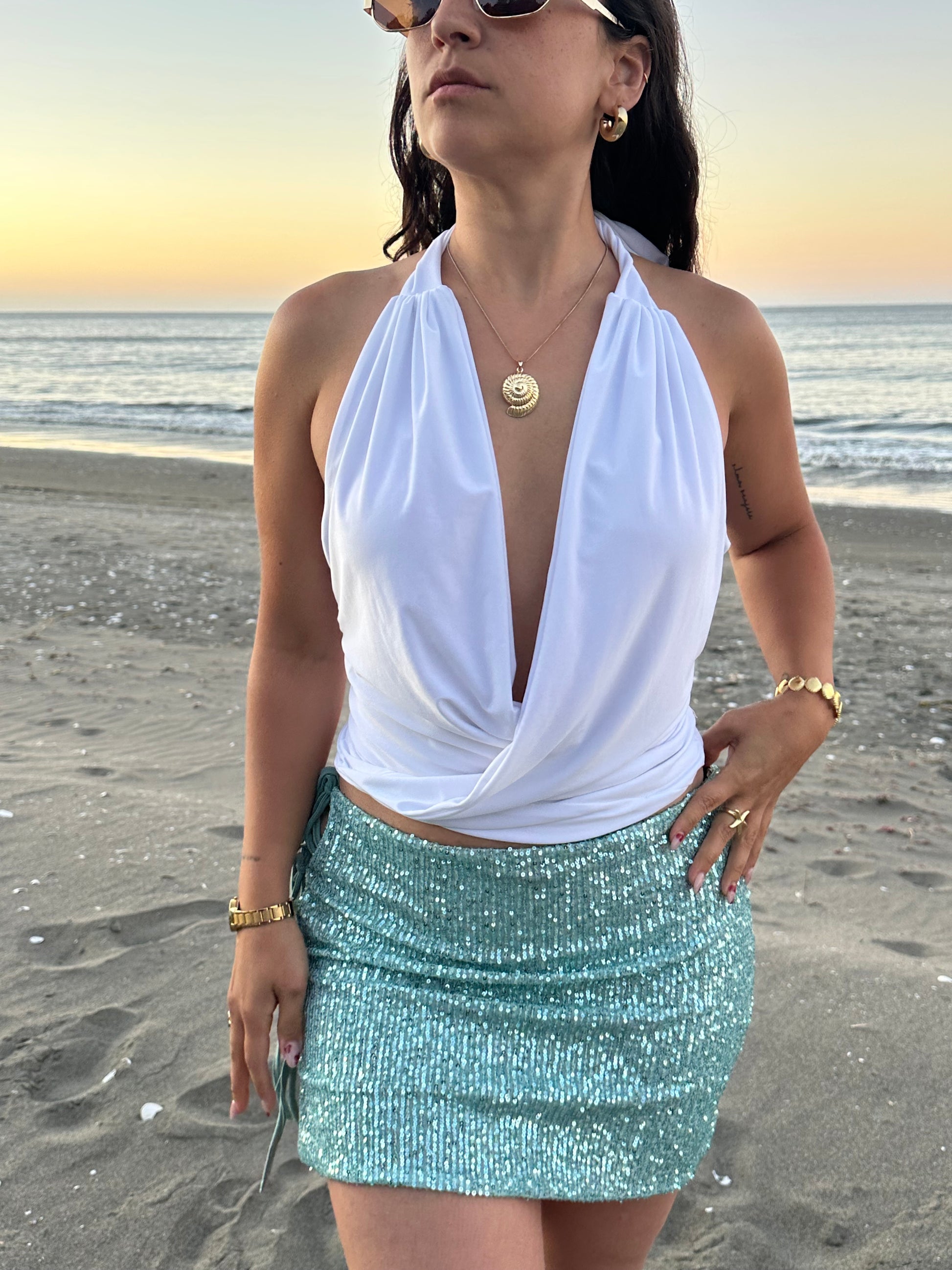 Top con hermosa caida, es ajustable en el cuello por lo que te lo puedes ajustar 100% a tu medida 💘. Tiene la espalda descubierta pero queda muy seguro y cómodo 🔥.